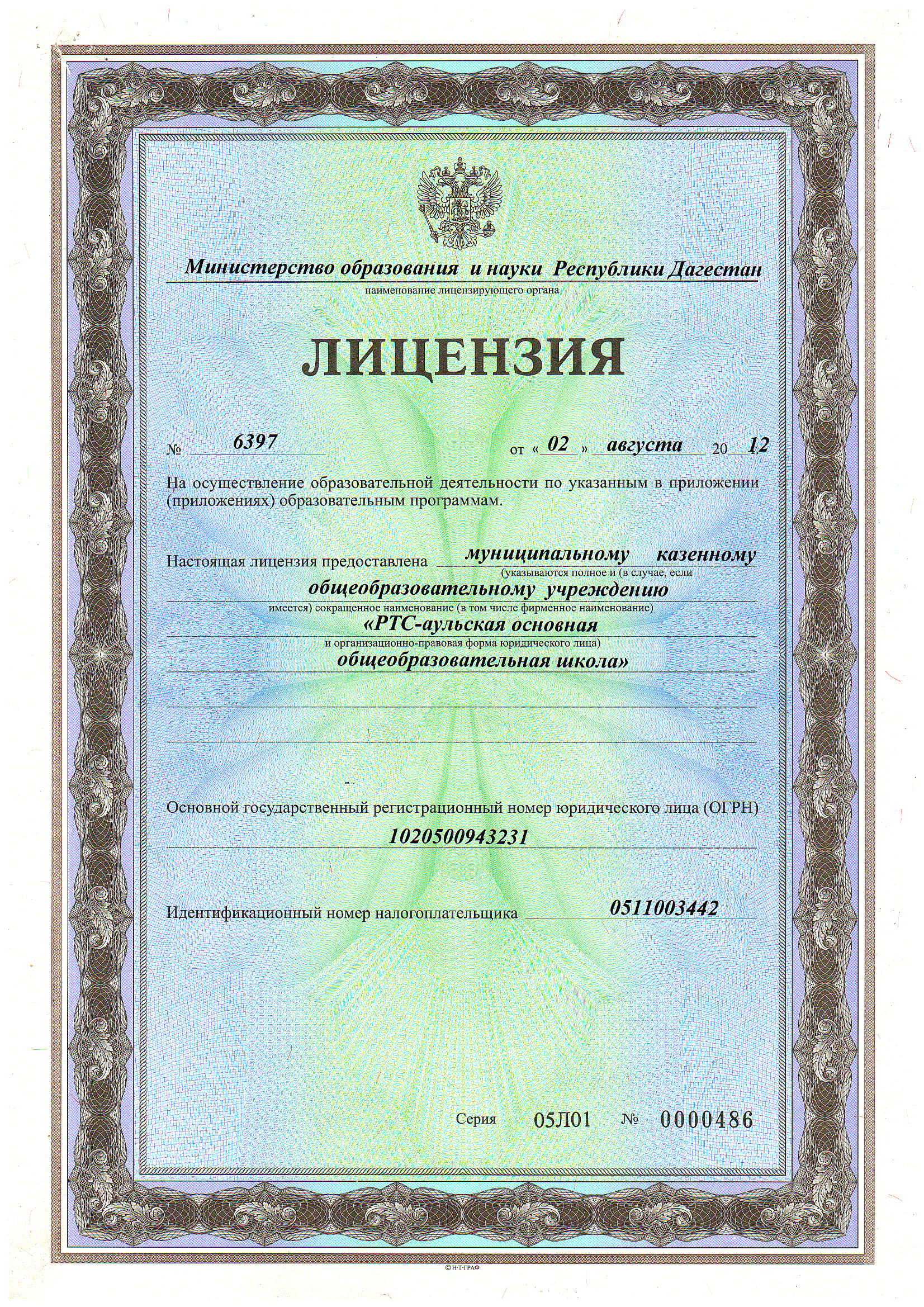 Лицензия (выписка из реестра)