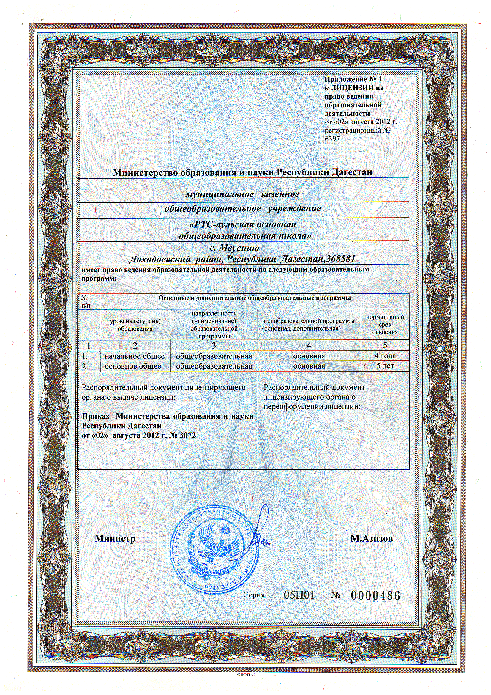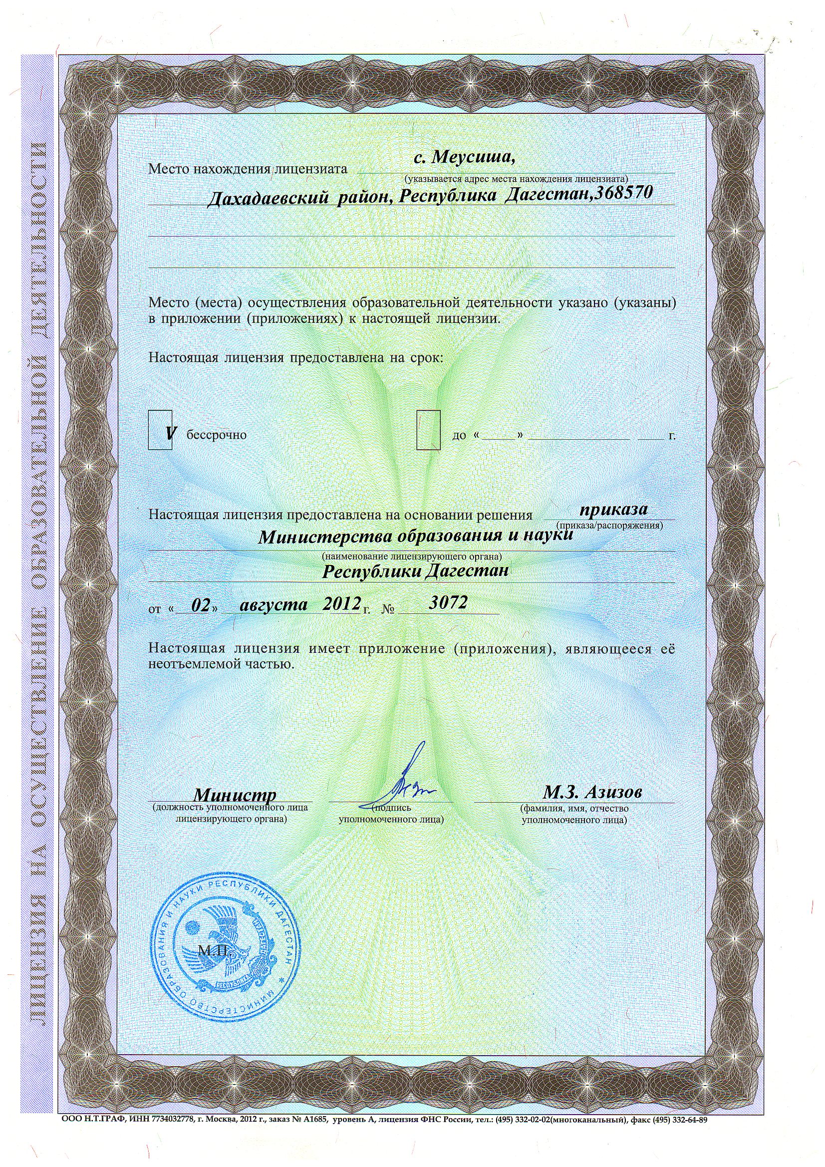 Адрес местонахождения образовательной организации* 368580, Республика Дагестан, Дахадаевский район, с. Меусиша